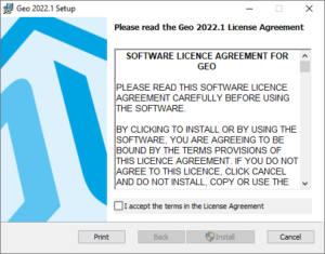 If Geo is to be updated with a new version, it is sufficient to download the installation file for the program only. On the download page there are two choices, complete and only msi. In this case, it is the msi file that is relevant. The main difference between these files is that the msi file only contains Geo and a menu like the one above does not appear. Follow the instructions during the installation process. After Geo 2022.1 it is only one file.