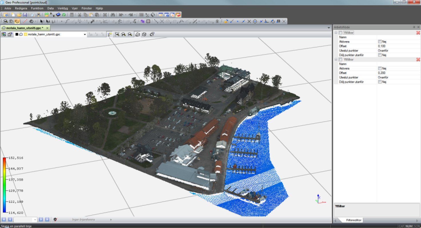 Geo punktmoln har avancerade filterfunktioner för att snabbt och rationellt städa bort oönskad data såsom träd, byggnader och övrigt brus.